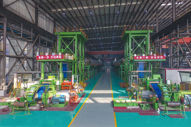 公司擁有1420酸洗冷軋聯(lián)合機組(PL-TCM)一套,機械由中國一重及中冶南方共同設(shè)計制造,電氣采用上海寶信軟件自動化控制系統(tǒng),機組設(shè)備配置合理,整體裝備達(dá)到國內(nèi)一流水平。機械設(shè)備涵蓋激光焊接設(shè)備、噴射紊流式酸洗設(shè)備、高精度雙塔式切邊設(shè)備(SMS)、五機架竄輥式UCM連軋機、新型回轉(zhuǎn)式雙卷筒卷取機,軋機電氣采用秒流量控制系統(tǒng)。